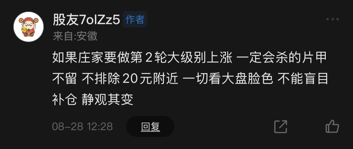 温馨提示: 1.根据《证券法》规定,禁止编造、传播虚假信息或者误导性信息,扰乱证券市场;2.用户在本社区发表的所有资料、言论等仅代表个人观点,与本网站立场无关,不对您构成任何投资建议。用户应基于自己的独立判断,自行决定证券投资并承担相应风险。《东方财富社区管理规定》