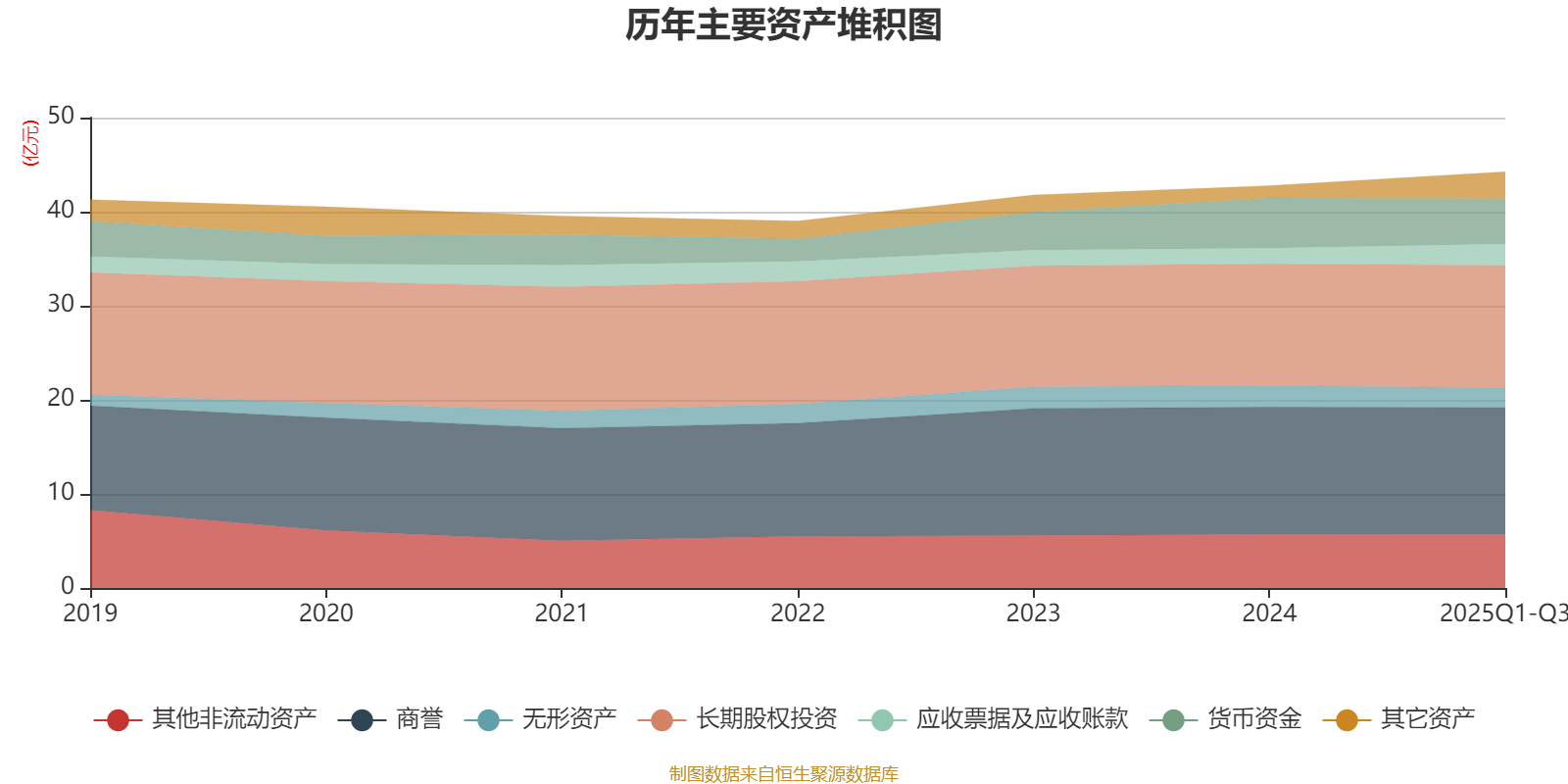 资产重大变化方面,截至2025年三季度末,公司货币资金较上年末减少9.61%,占公司总资产比重下降1.58个百分点;交易性金融资产合计较上年末增加33332.33%,占公司总资产比重上升1.43个百分点;应收票据及应收账款较上年末增加36.99%,占公司总资产比重上升1.25个百分点;商誉较上年末减少0.08%,占公司总资产比重下降1.09个百分点。