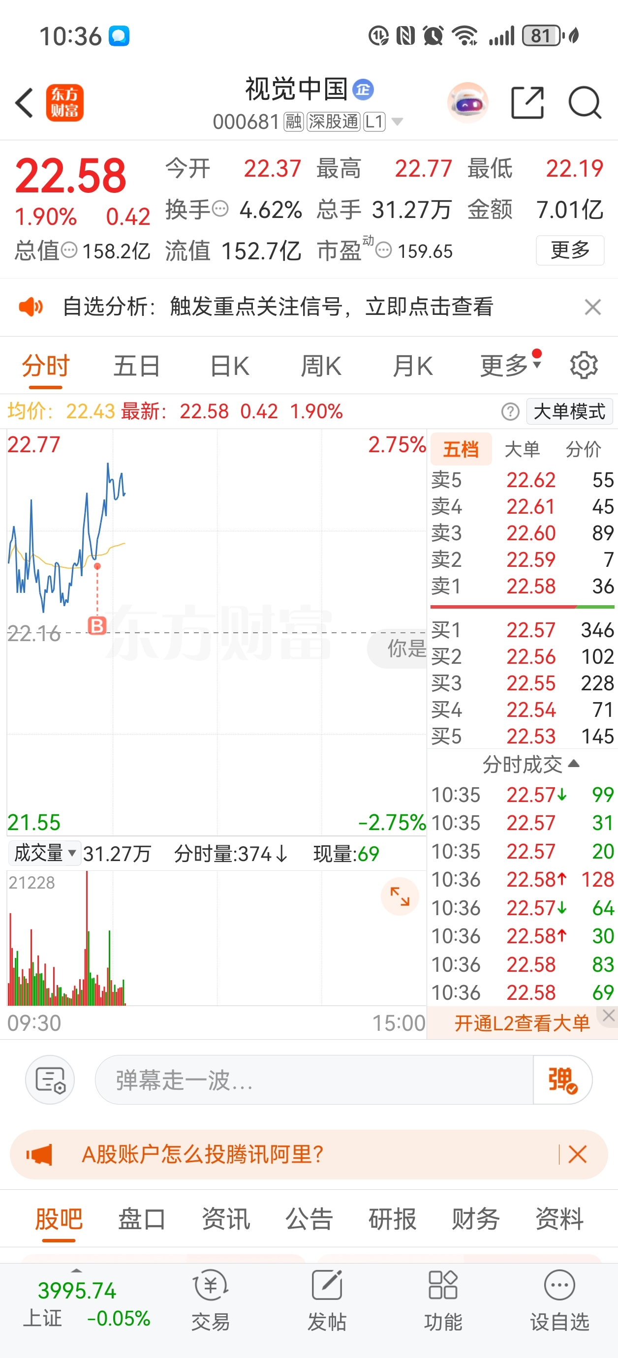 $视觉中国(SZ000681)$ 上周五清了,今天又原封不动买回,但是感觉有点诱多的味道,看不懂了这个迷股