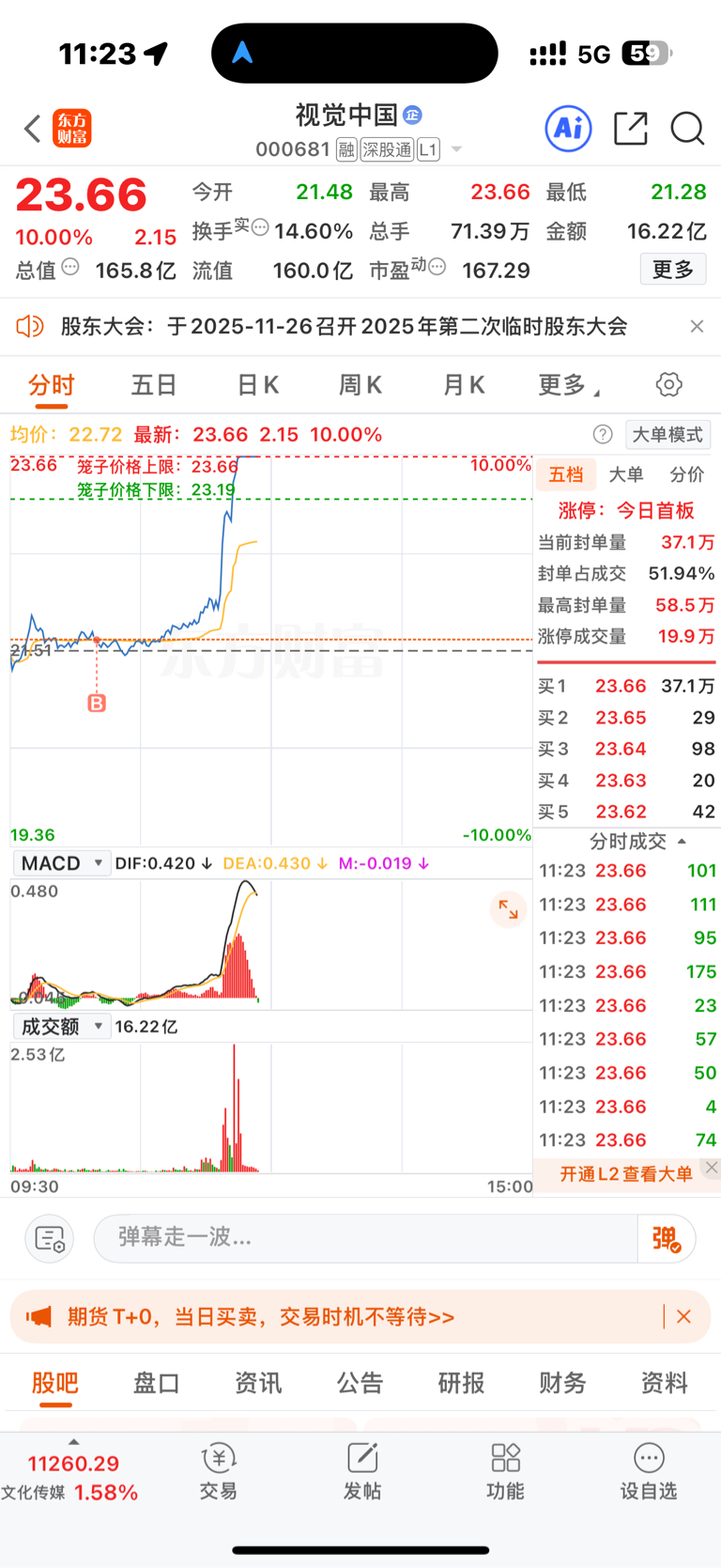 $视觉中国(SZ000681)$ 直觉越来越强了自己都觉得不可思议,今天大盘弱清掉所有仓位后感觉视觉中国有点意思,w底右底明显空军不足就买了没想到直接涨停了,运气板吧