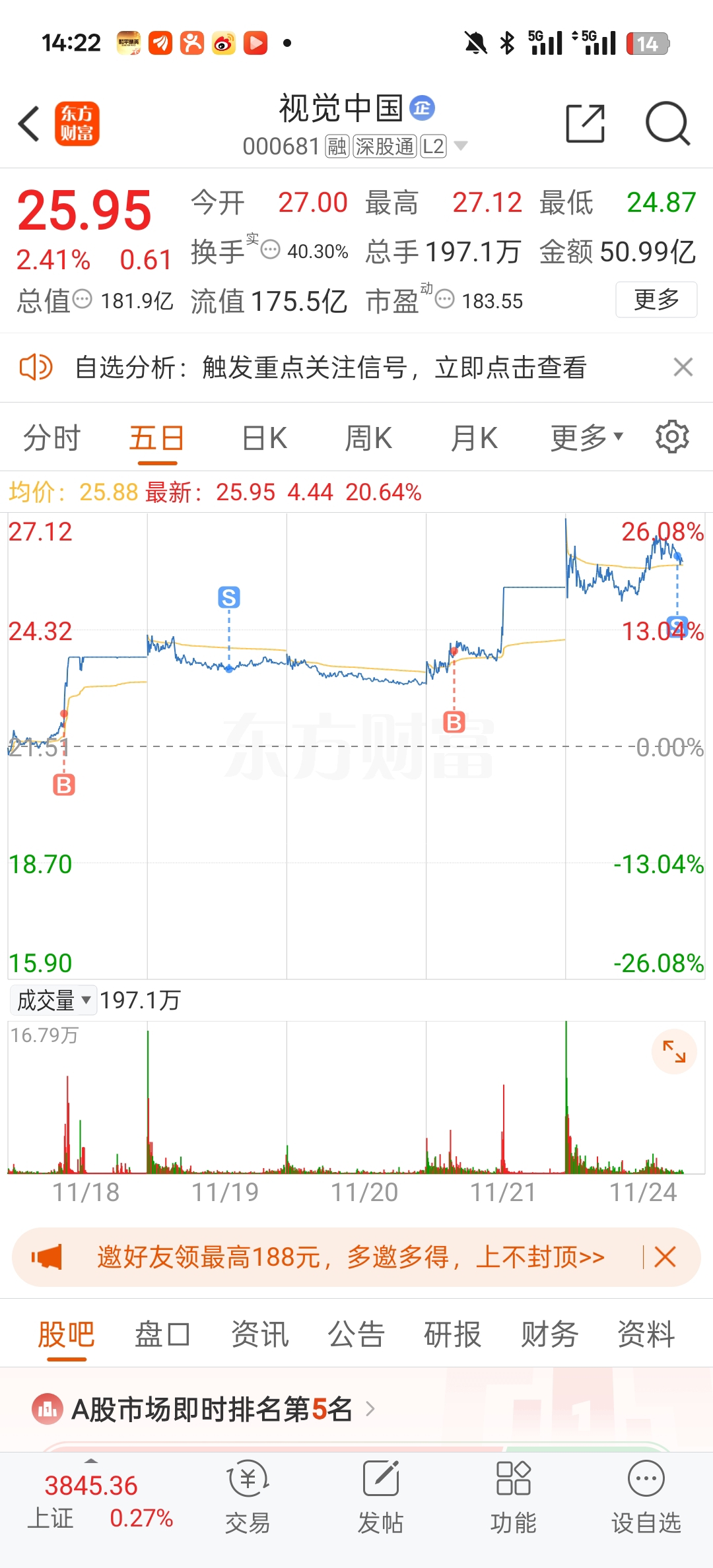 $视觉中国(SZ000681)$ 20个点,跑了,兄弟们发财