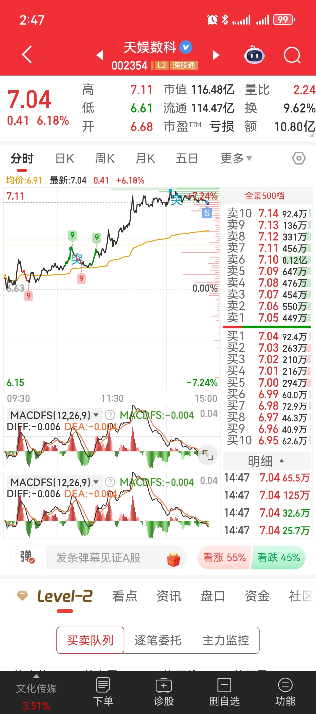 $视觉中国(SZ000681)$ 减半仓,但是感觉理智告诉我绝对卖飞了,明天低开在买回来,真的好困呀,快点收盘吧,要睡觉,以后周日不敢这么玩了,都怪合富挣得钱让我飘了,想着快钱就要快点消费掉,嘎嘎消费,主要还是77号美女,太漂亮了