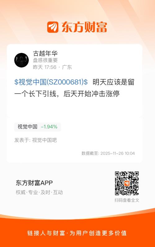 $视觉中国(SZ000681)$  明天应该是留一个长下引线,后天开始冲击涨停