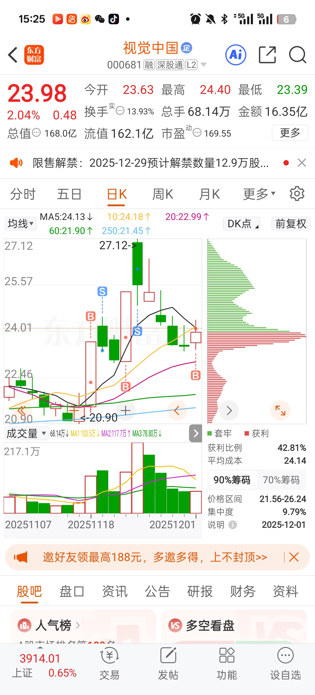 $视觉中国(SZ000681)$ 今天回家了