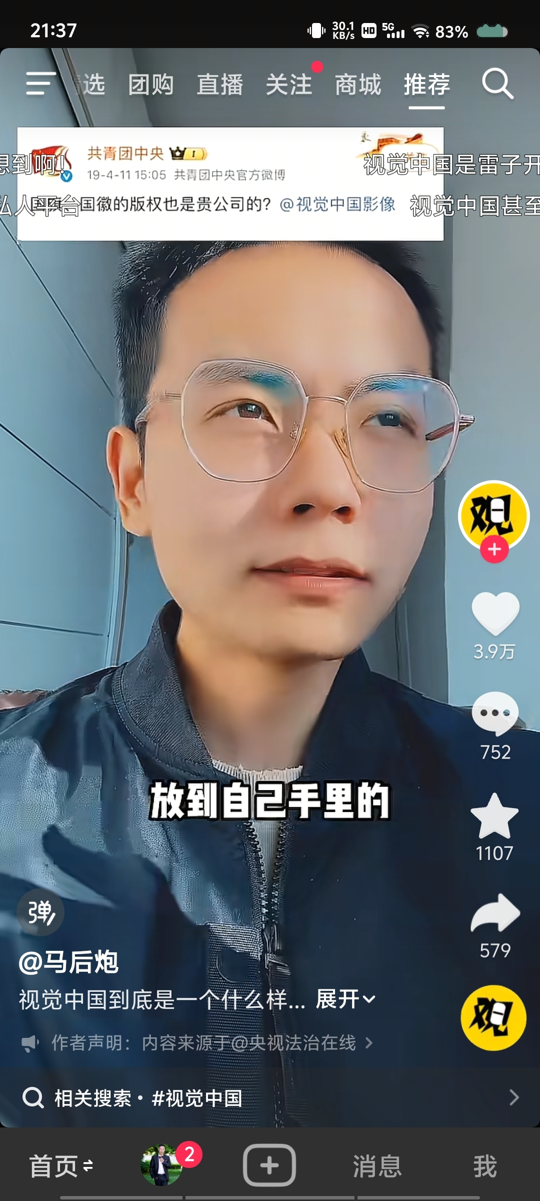 视觉中国版权被各大网络平台的博主再次拿来说事,并且多个视频拥有不小的播放量