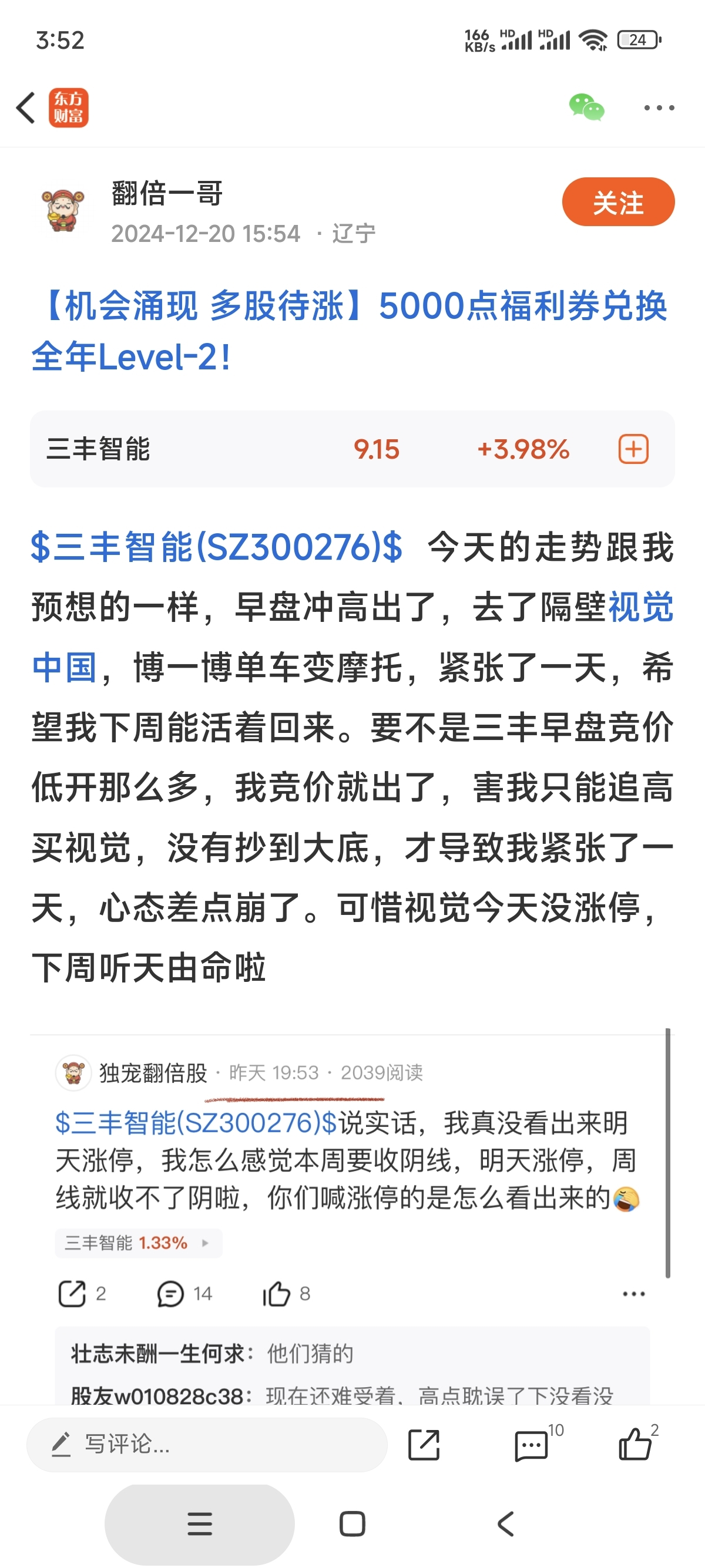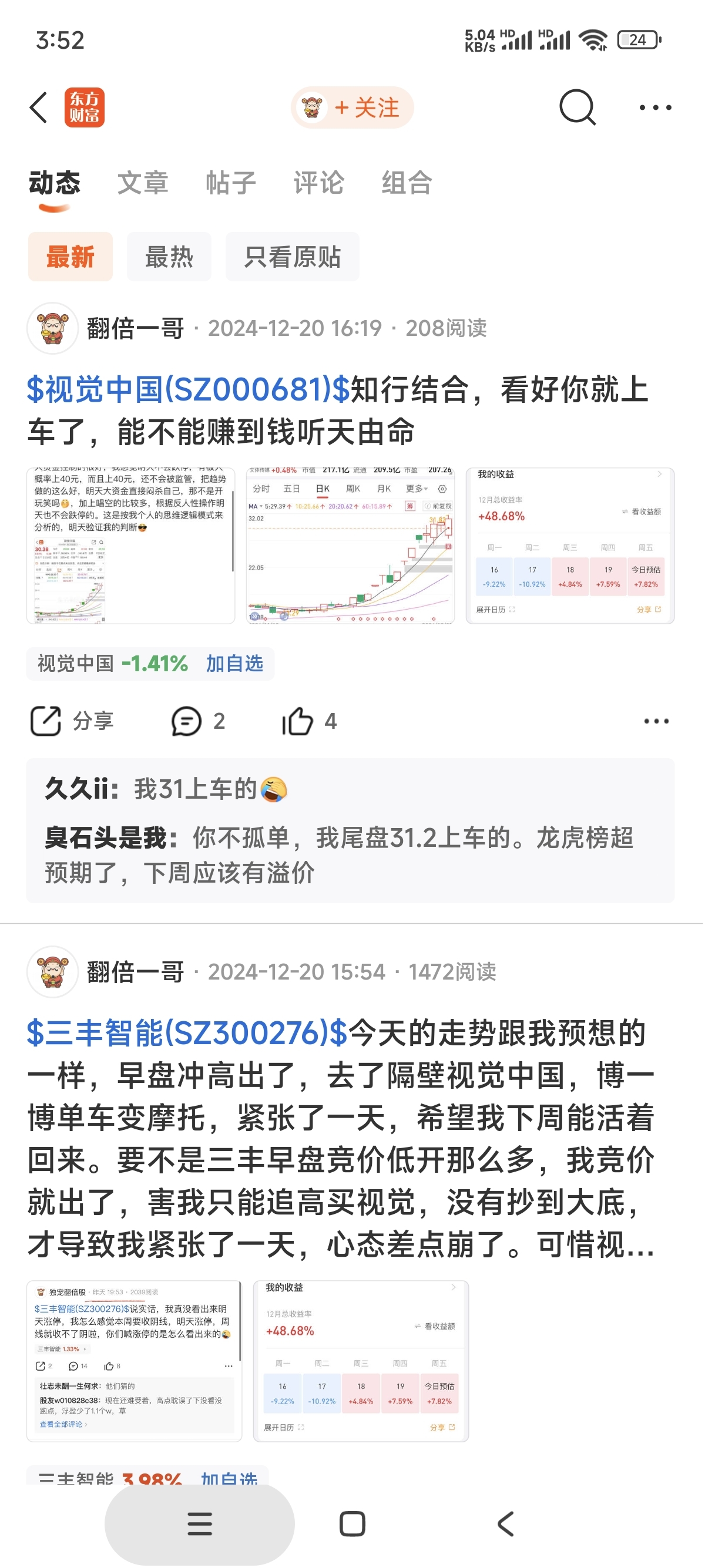 那个翻倍哥是在2024-12-20日全仓高位接盘的,成本30+,精神已经出了问题了,唱了一年。