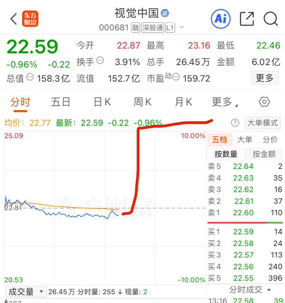 $视觉中国(SZ000681)$ 一支穿云箭主力送钱来