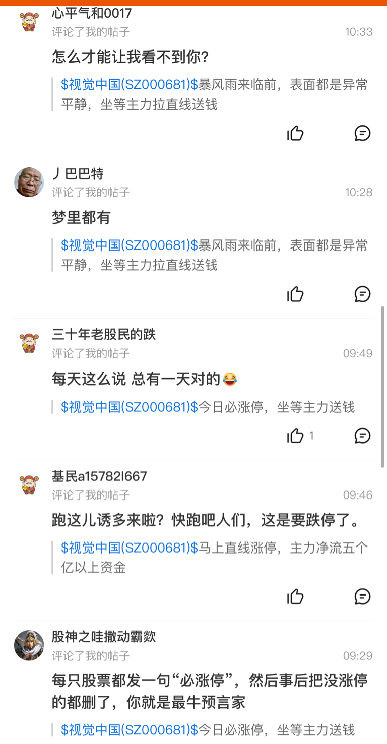 $视觉中国(SZ000681)$ 每日收到的都是这样的留言,低位唱多就是这样的,卖力不讨好,等股价涨起来啦,个个觉得自己是股神,没几个人提起我,20-30%的收益就是普通人的极限,单股100%的收益,告诉你翻倍又如何,你拿的住吗