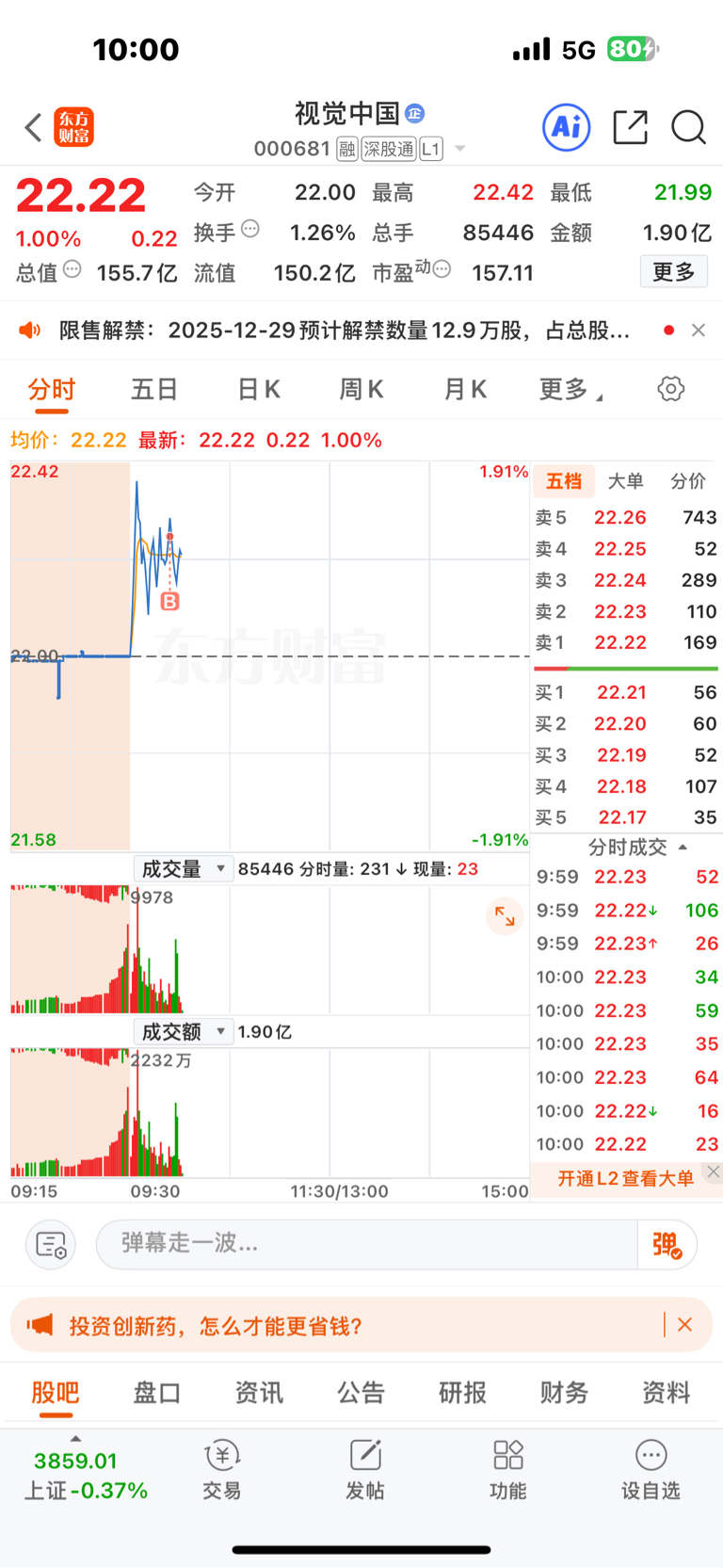 $视觉中国(SZ000681)$ 第一天来,希望涨停吧