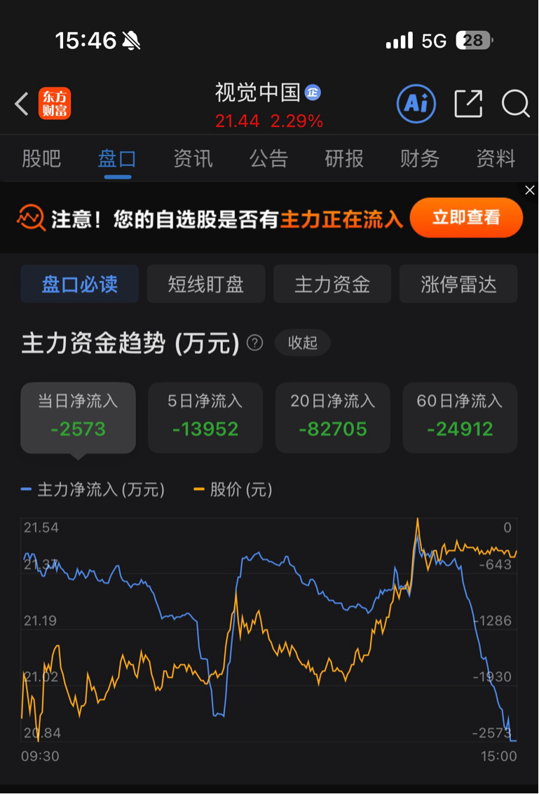$视觉中国(SZ000681)$ 尾盘主力一直在卖啊