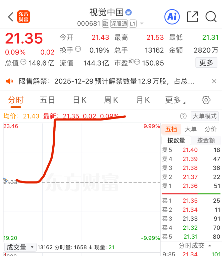 $视觉中国(SZ000681)$ 一只穿云箭,主力儿子们来送钱