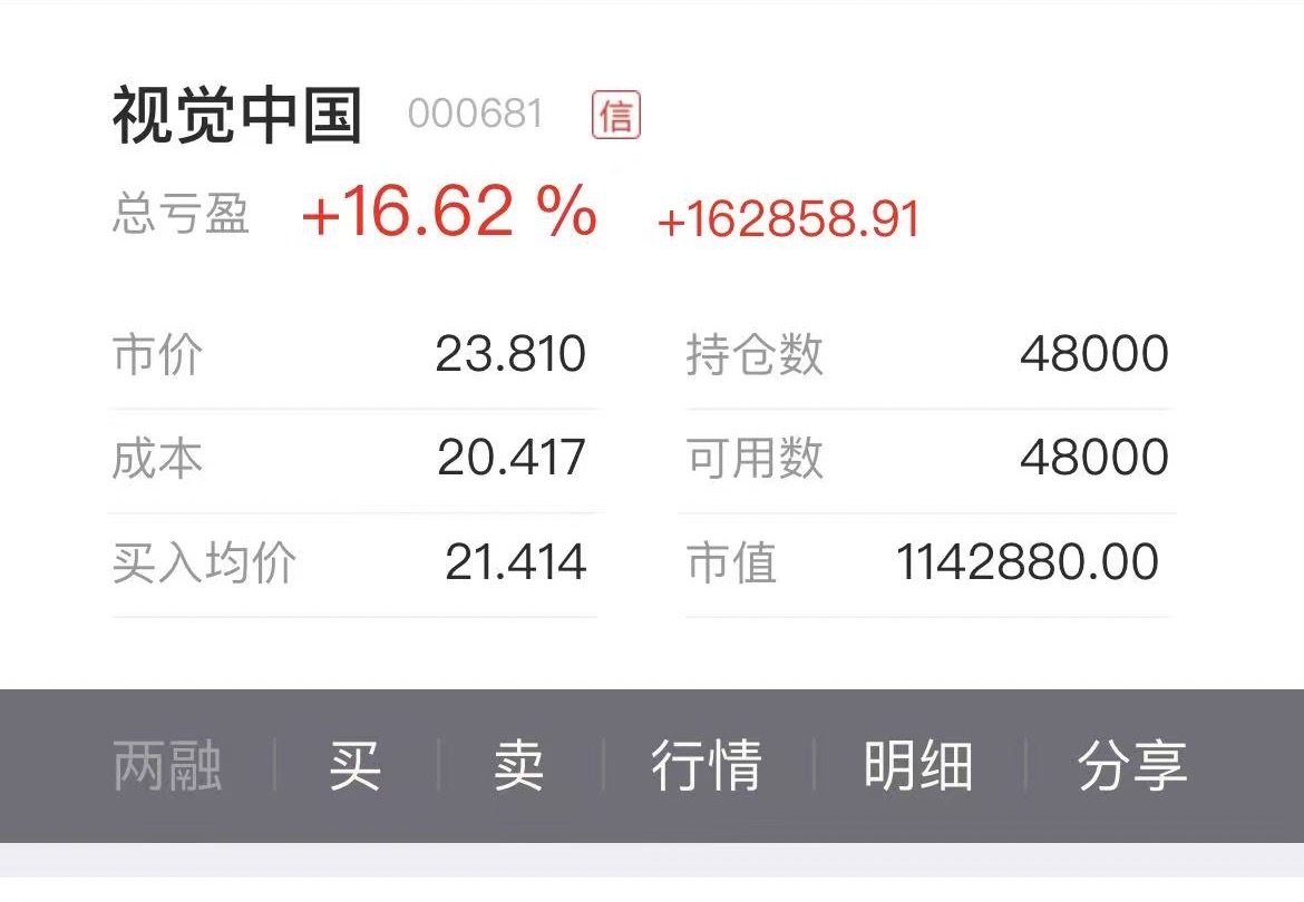 我仓位最小的一只股,涨跌我毫不在乎,百度大涨跟视觉中国的业务范畴没半毛钱联系,1