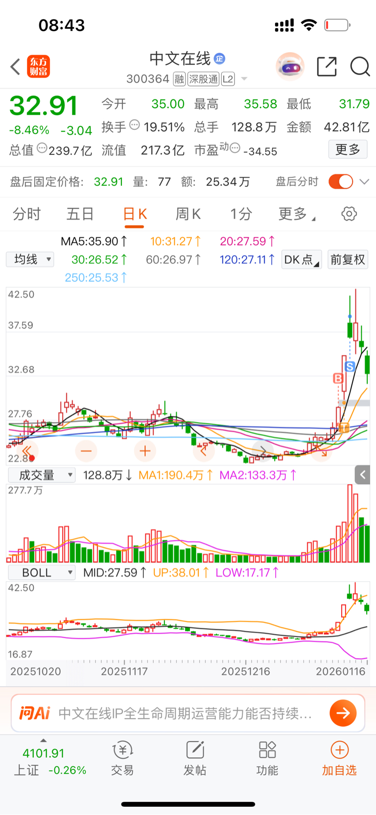 这周卖了ai,本来已经空了,本来可以空仓看戏的,但是就是不忿,让人想吐,ai才涨