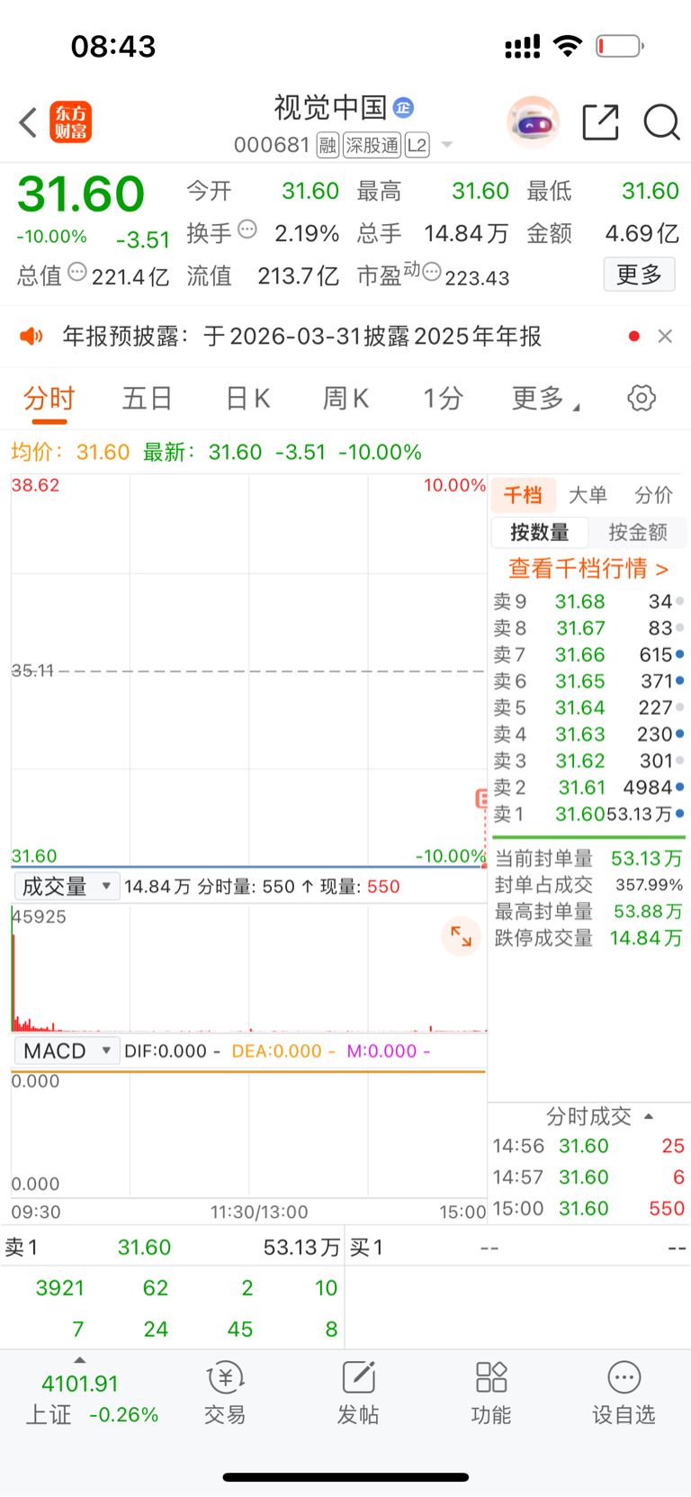 $视觉中国(SZ000681)$ 这周卖了ai,本来已经空了,本来可以空仓看戏的,但是就是不忿,让人想吐,ai才涨了多点就这样压?原因就是不让散户赚钱?它们手里的货没出,没来ai建仓,不想后面来给散户抬轿? 这波Cpo,芯片,又或者其他的拉上天我都一股不会买的,人是要有点志气,有点脾气,视觉中国我主动入套,你们请便。