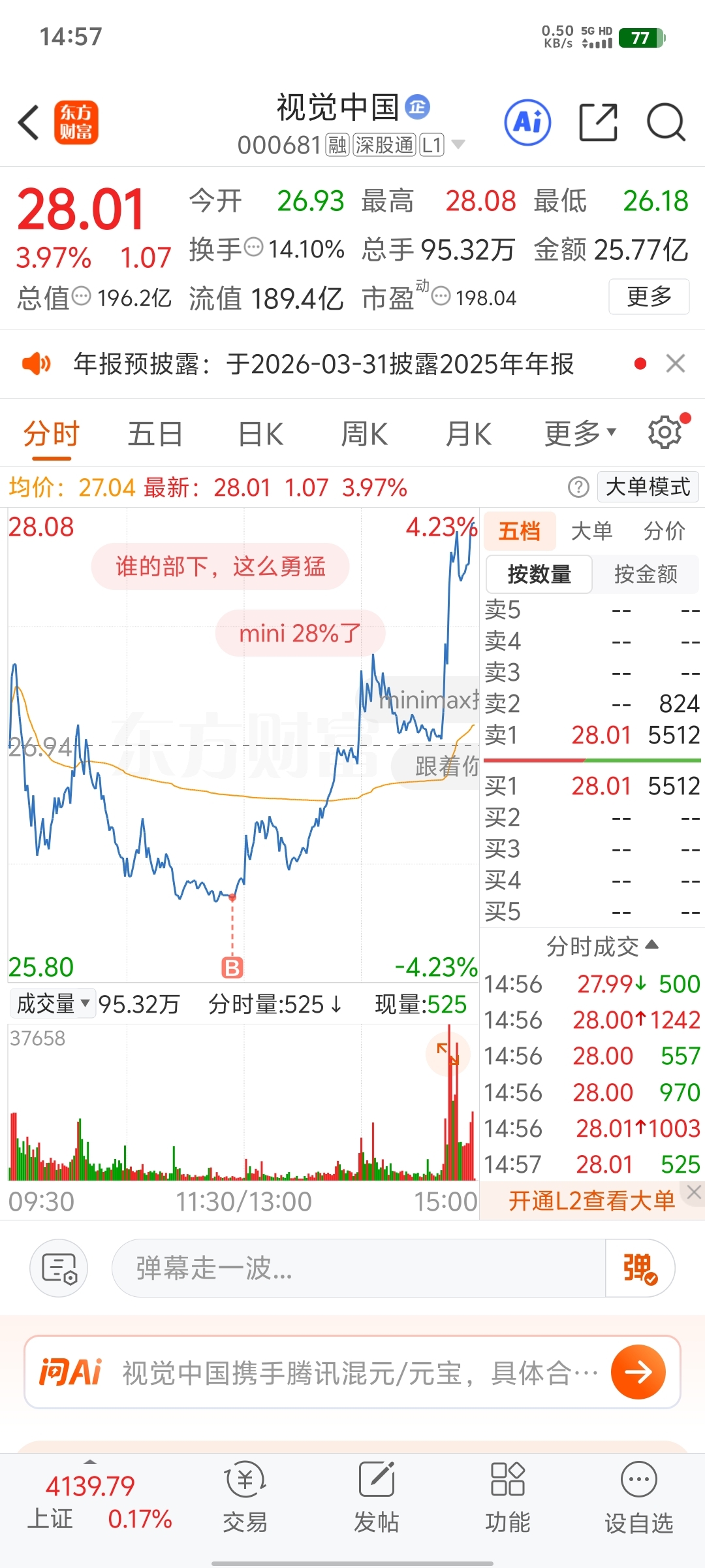 $视觉中国(SZ000681)$ 感谢主力