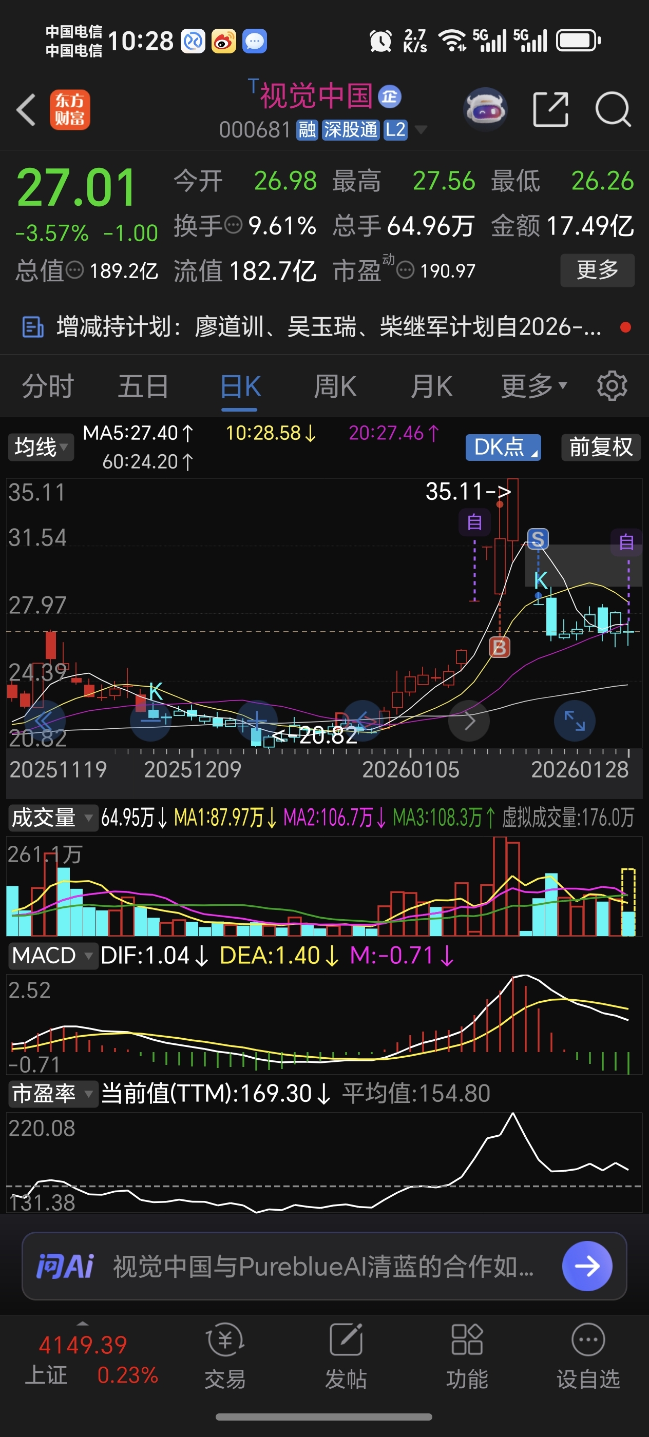$视觉中国(SZ000681)$ 当时买入的理由是AI应用爆发,很多相关股票大涨,像蓝色光标,易点天下等,认为机会来了.……最后亏损卖出