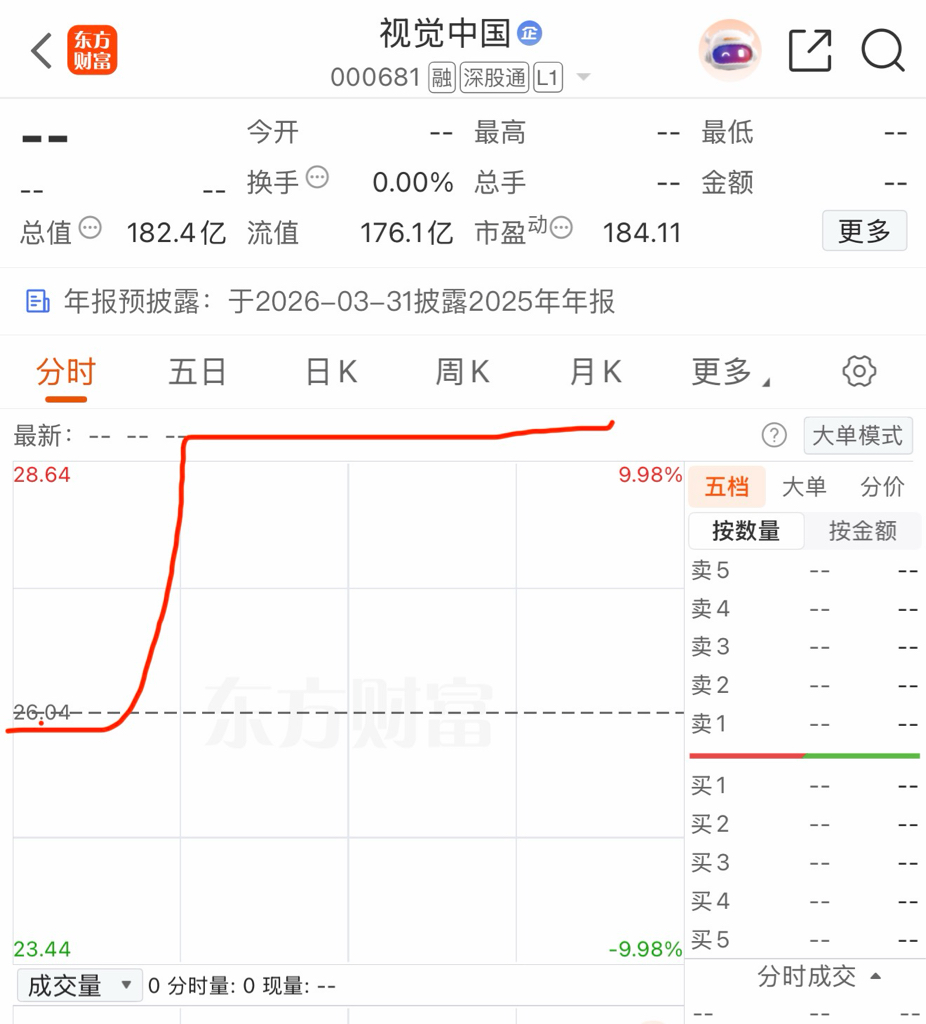 $视觉中国(SZ000681)$ 预测今日涨停板,一只穿云箭,主力送钱来