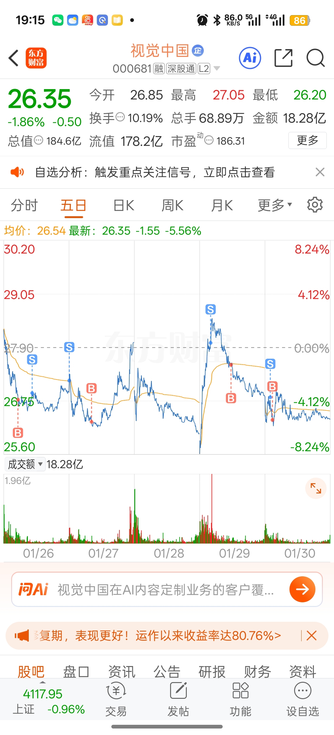 $视觉中国(SZ000681)$ 讲个笑话28.8买的,现在26居然还赚两个点