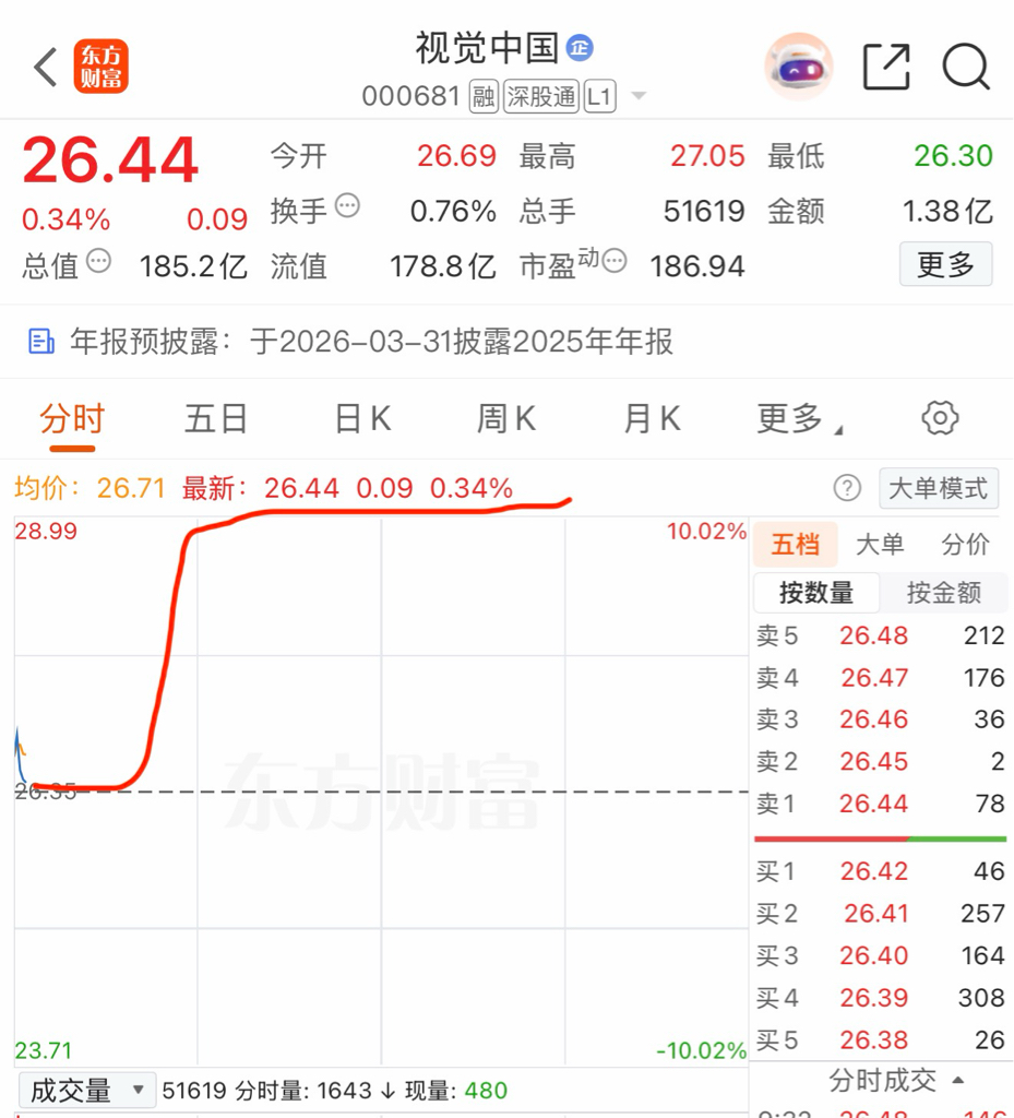 $视觉中国(SZ000681)$ 一只穿云箭,主力送钱来,坐等主力儿子直线涨停
