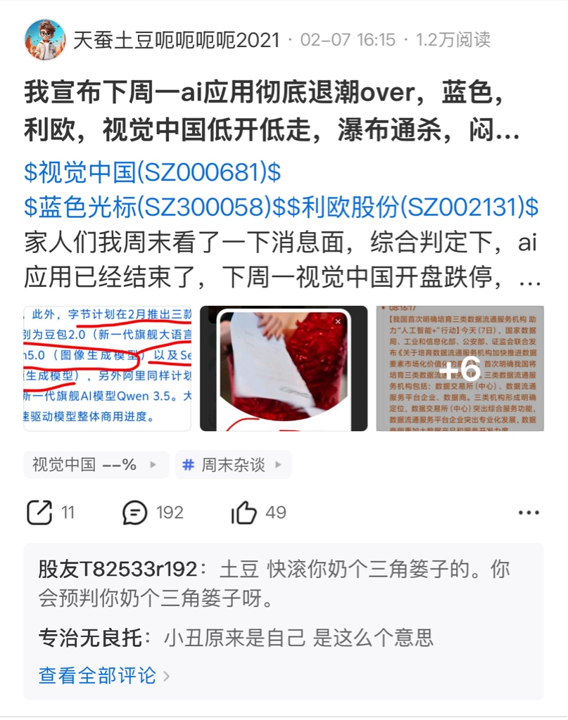 郑重声明:用户在财富号/股吧/博客等社区发表的所有信息(包括但不限于文字、视频、音频、数据及图表)仅代表个人观点,与本网站立场无关,不对您构成任何投资建议,据此操作风险自担。请勿相信代客理财、免费荐股和炒股培训等宣传内容,远离非法证券活动。请勿添加发言用户的手机号码、公众号、微博、微信及QQ等信息,谨防上当受骗!
