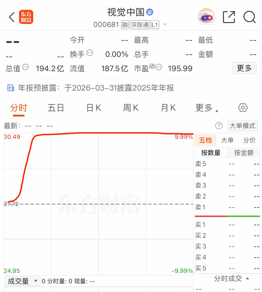 $视觉中国(SZ000681)$ 马前炮预测,今日必涨停