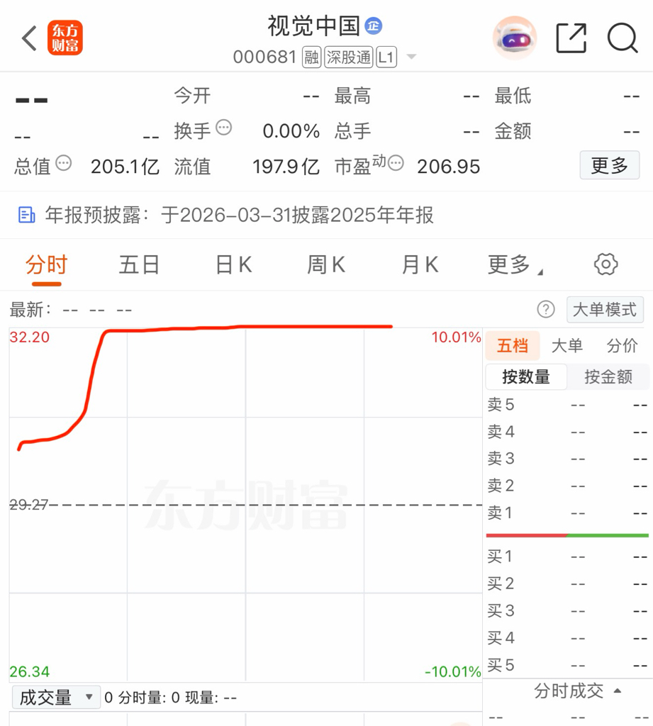 9.05分,马前炮提前预测视觉中国今日必涨停,坐等视觉主力儿子送钱
