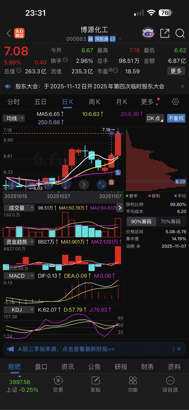 $博源化工(SZ000683)$ 周四尾盘买的,今天下午6个多点出了