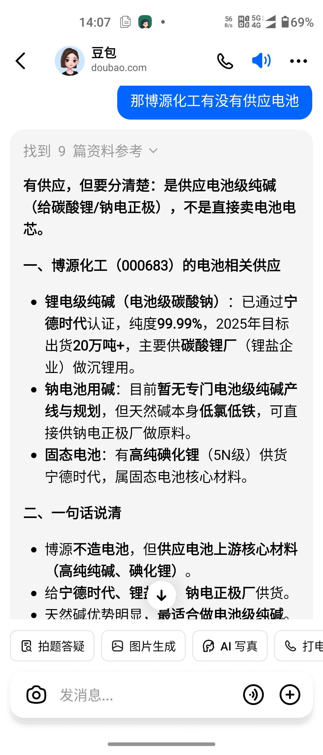 $博源化工(SZ000683)$ 豆包说博源有供宁德时代纯碱用作电池生产,博源每年20万吨电池级纯碱产能