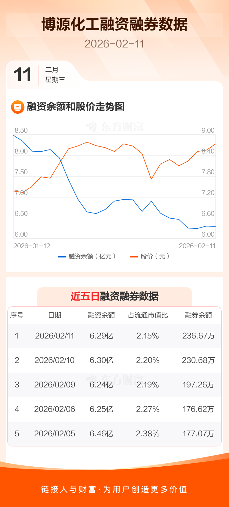 交易所最新数据显示,博源化工于2026年2月11日获融资买入2599.25万元,融资偿还2773.56万元,当日融资净偿还174.3万元。目前,该股融资余额6.29亿,占流通市值比例为2.15%。