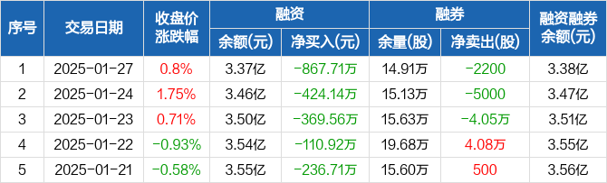 中山公用:连续5日融资净偿还累计2009.03万元(01-27)