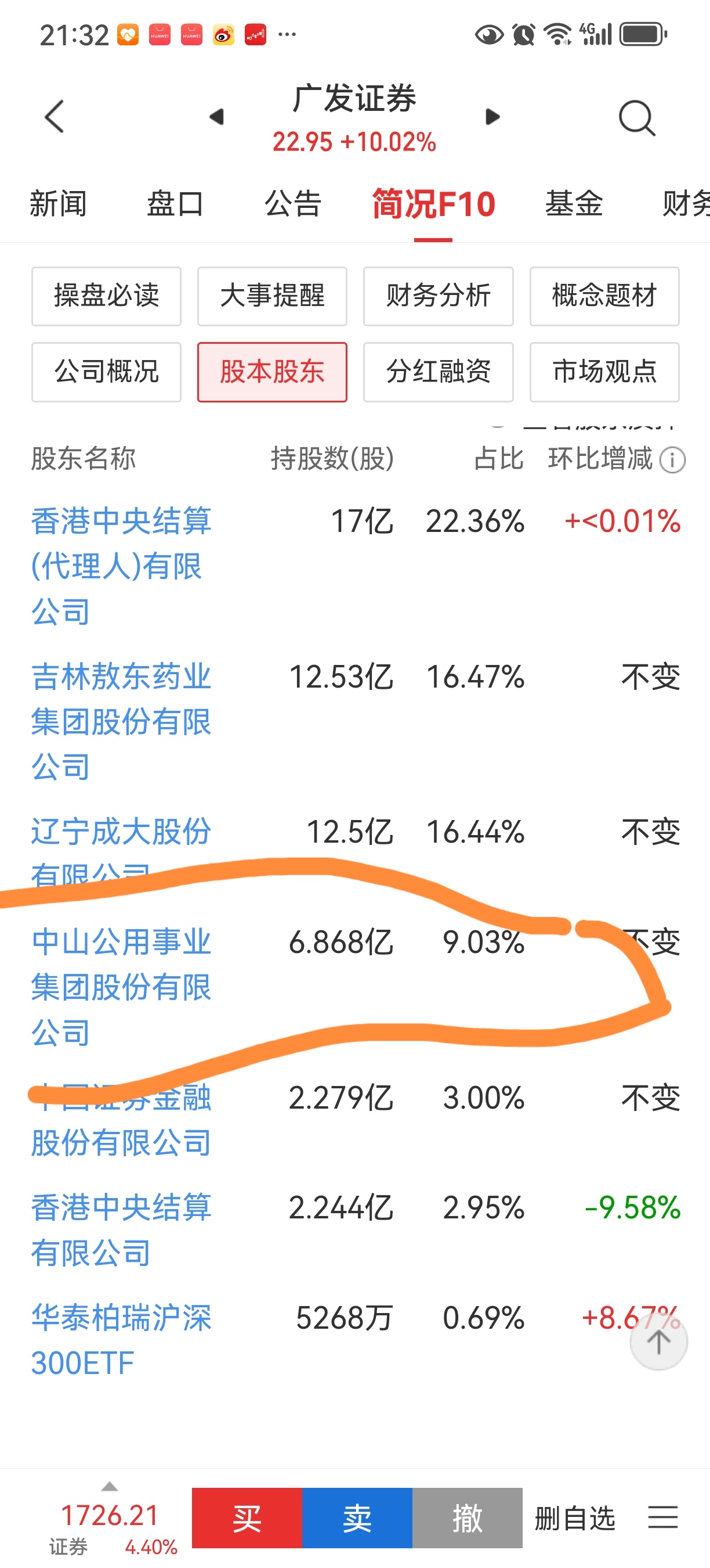更正:中山公用持有广发证券(含港股)市值达174.7亿! 10月1日