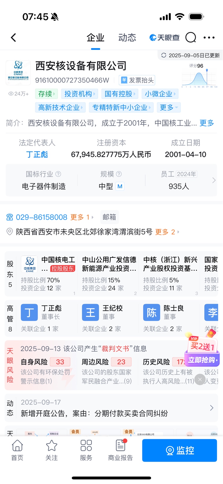$中山公用(SZ000685)$ 天眼查官方数据,中山公用产业基金持股西安核设备有限公司15%股权