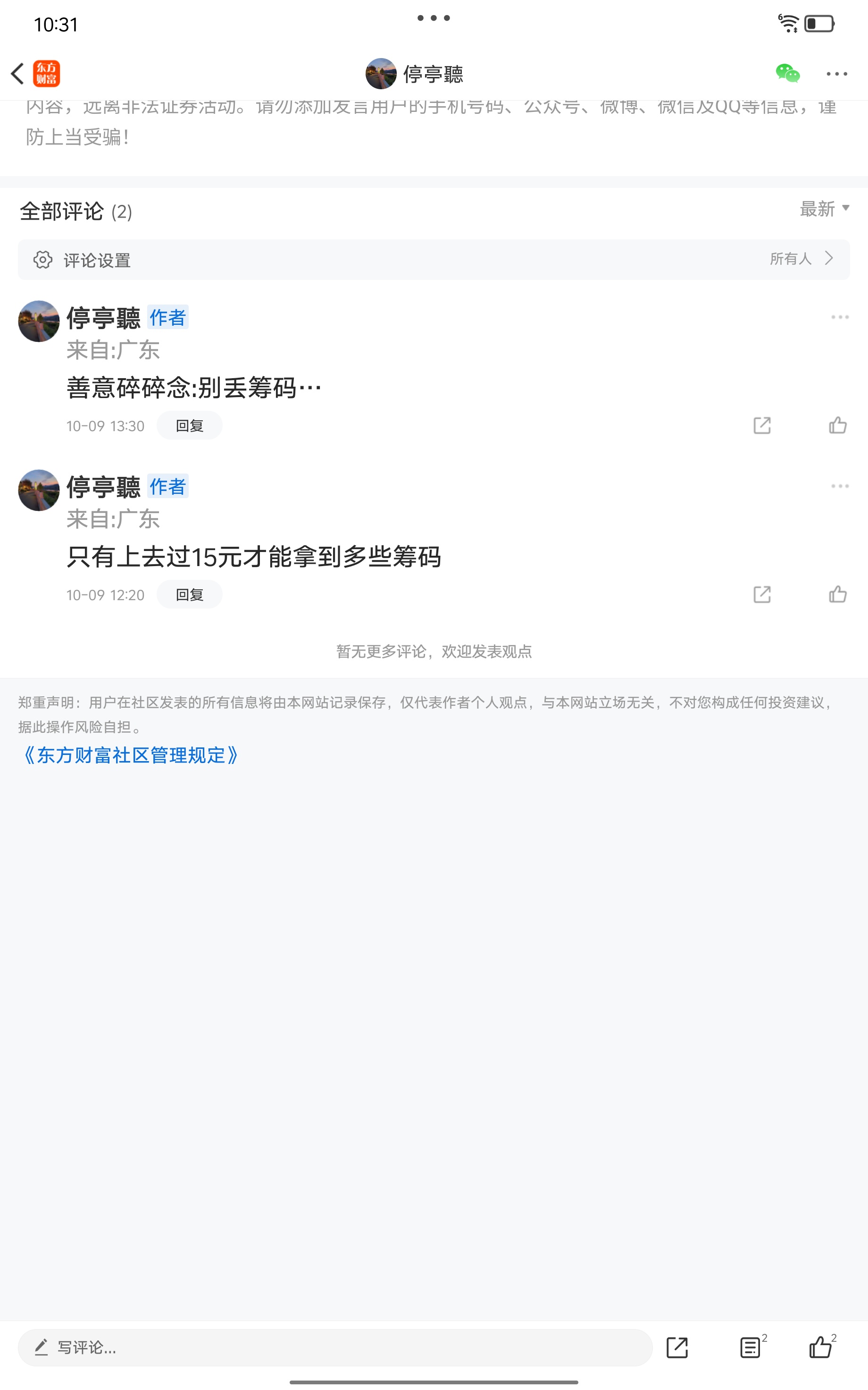 温馨提示: 1.根据《证券法》规定,禁止编造、传播虚假信息或者误导性信息,扰乱证券市场;2.用户在本社区发表的所有资料、言论等仅代表个人观点,与本网站立场无关,不对您构成任何投资建议。用户应基于自己的独立判断,自行决定证券投资并承担相应风险。《东方财富社区管理规定》