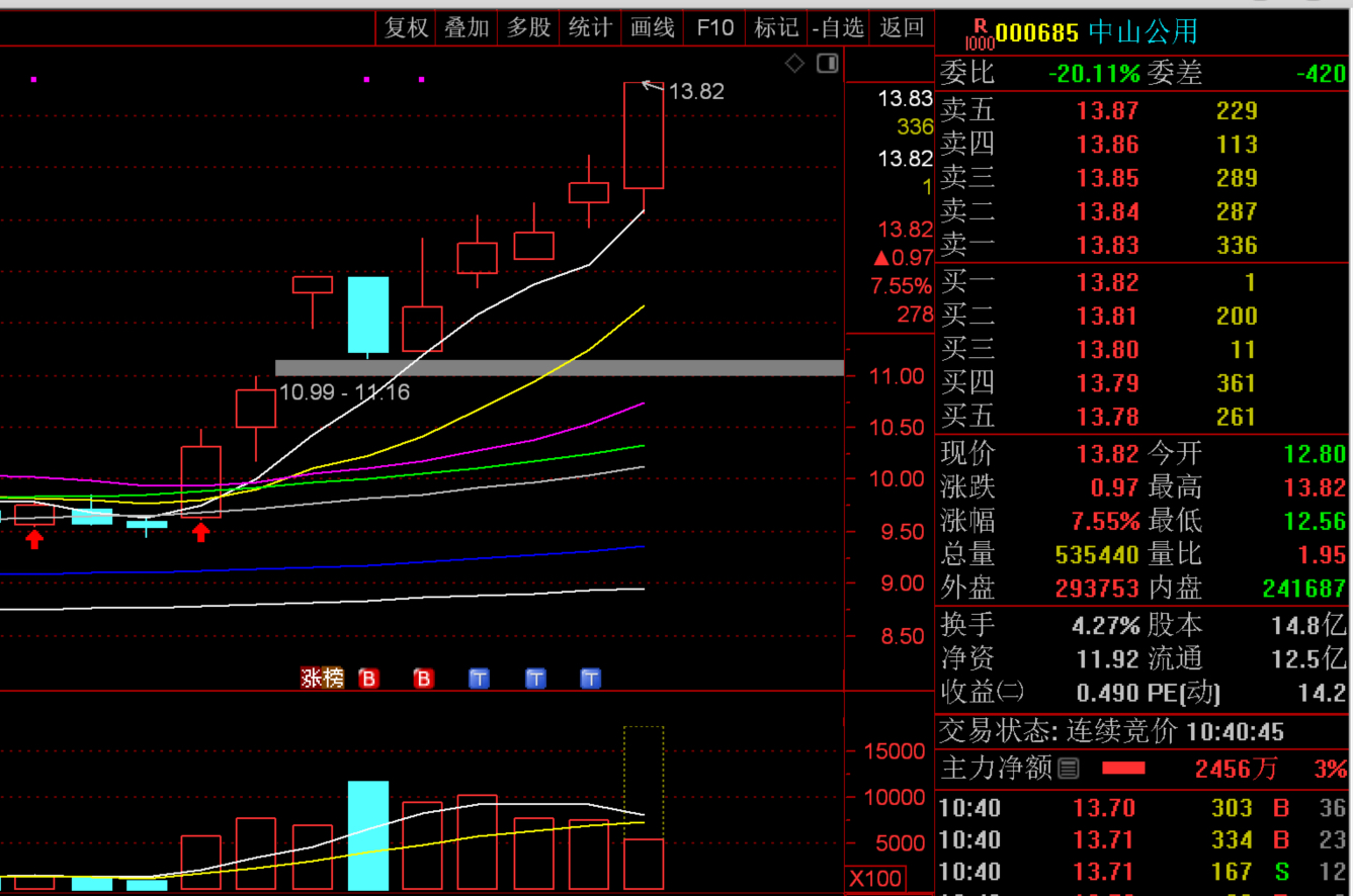 $中山公用(SZ000685)$ 如果今天不能涨停,13.85凸显压力,可以做适当高抛低吸降低下仓位。