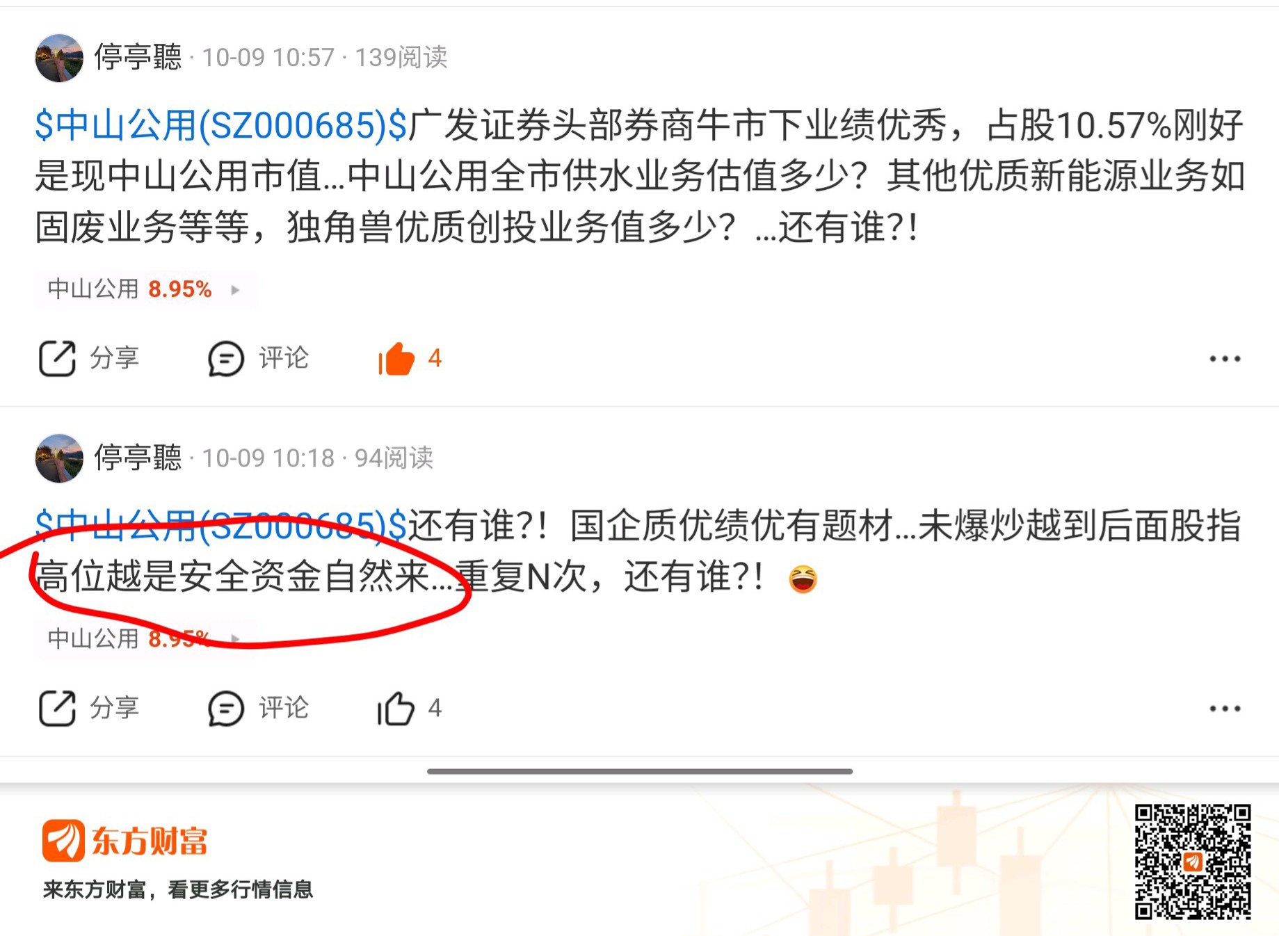 $中山公用(SZ000685)$ 9号的帖有提示高位安全…提示朋友3900高位注意保利润,当时自己是去银行将港股帐户港币盈利转部分出来…前面帖一直有善意的碎碎念,爆炒其他题材大赚了的资金会发现到这种国企公共事业质优绩优安全好股,且又兼具热门独角兽IPO创投题材…还有谁?!