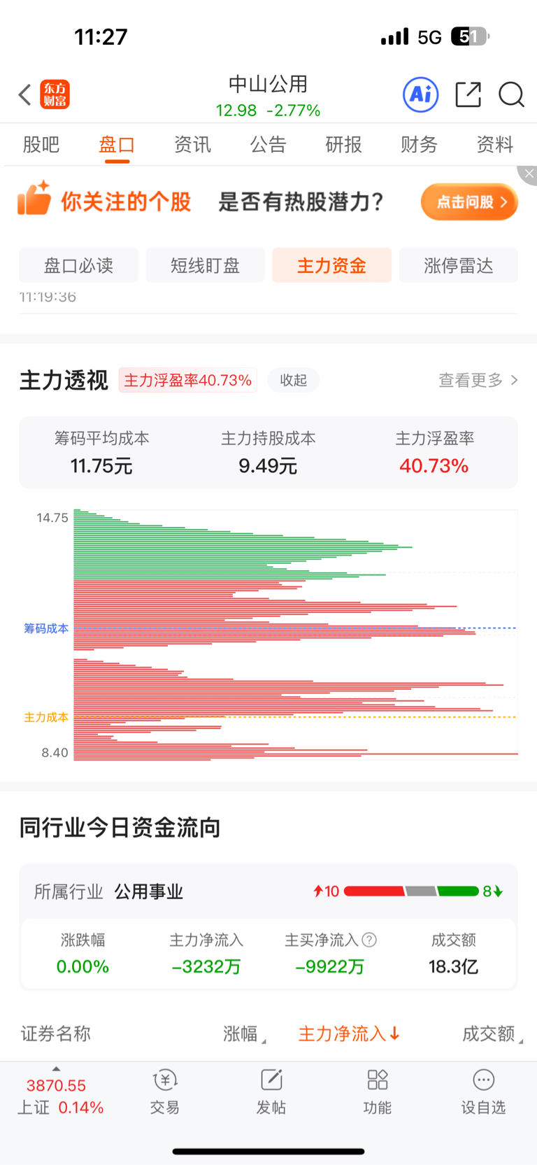 $中山公用(SZ000685)$ 主力成本9.47每天疯狂流出,不是洗盘!