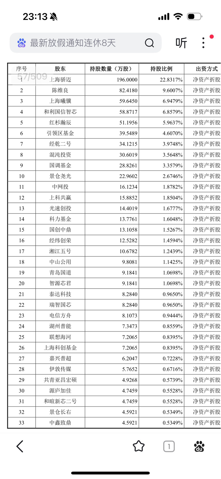 $中山公用(SZ000685)$ 我在上海证券委员会查到的最新招股书,我没看到网上传的持股比例0.3,也没看到别的公司,什么朗迪集团,什么超讯,什么七匹狼的名字,就看到了中山1.14,所以,谁是真龙,明天市场会给答案。