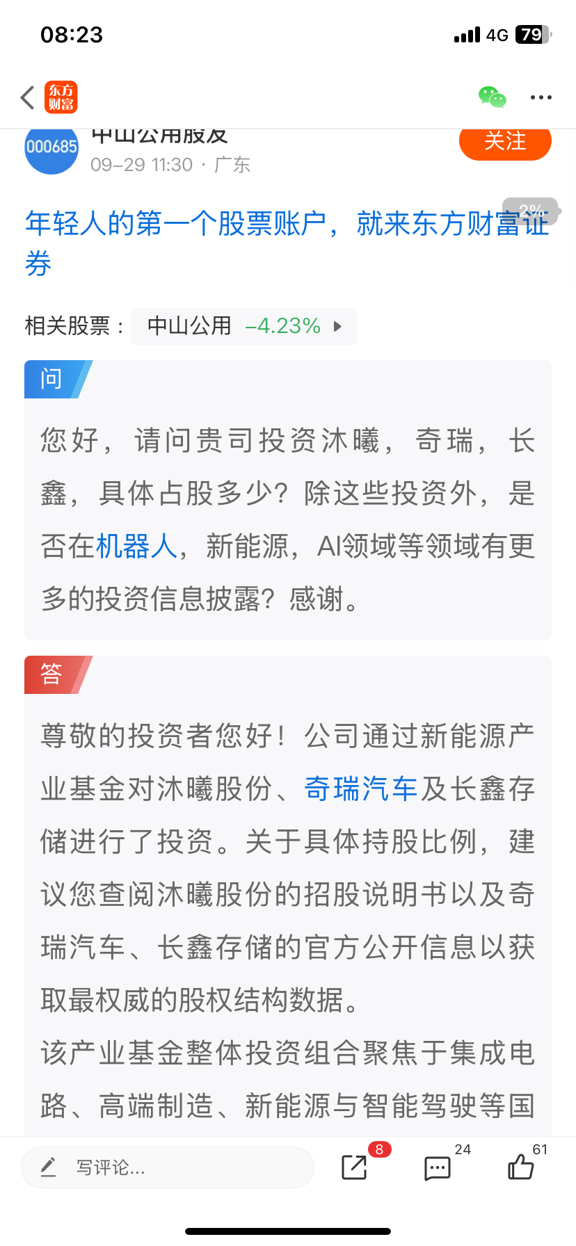 $中山公用(SZ000685)$ 看董秘答复,有长鑫存储投资。