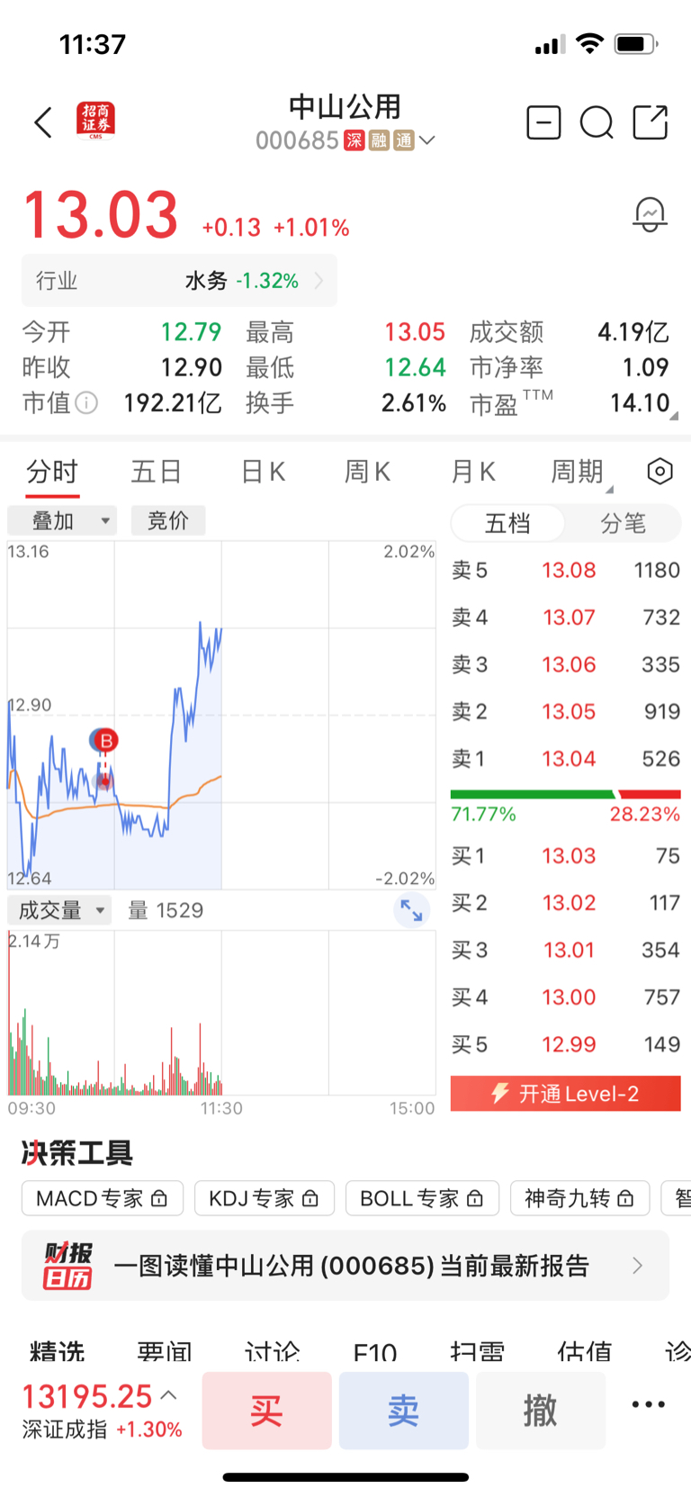 $中山公用(SZ000685)$ 半仓怒赚1分钱