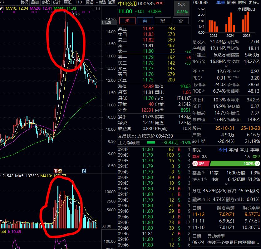 中山公用已炒完,在天量天价已成功出逃,把小笨散套在天量天价的位置上,要套11年了