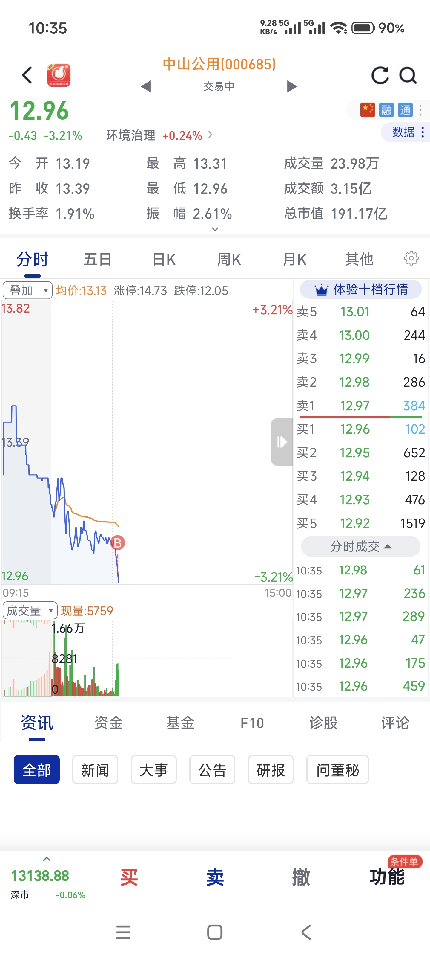 $中山公用(SZ000685)$ 12.98全仓梭哈,坐等数钱。