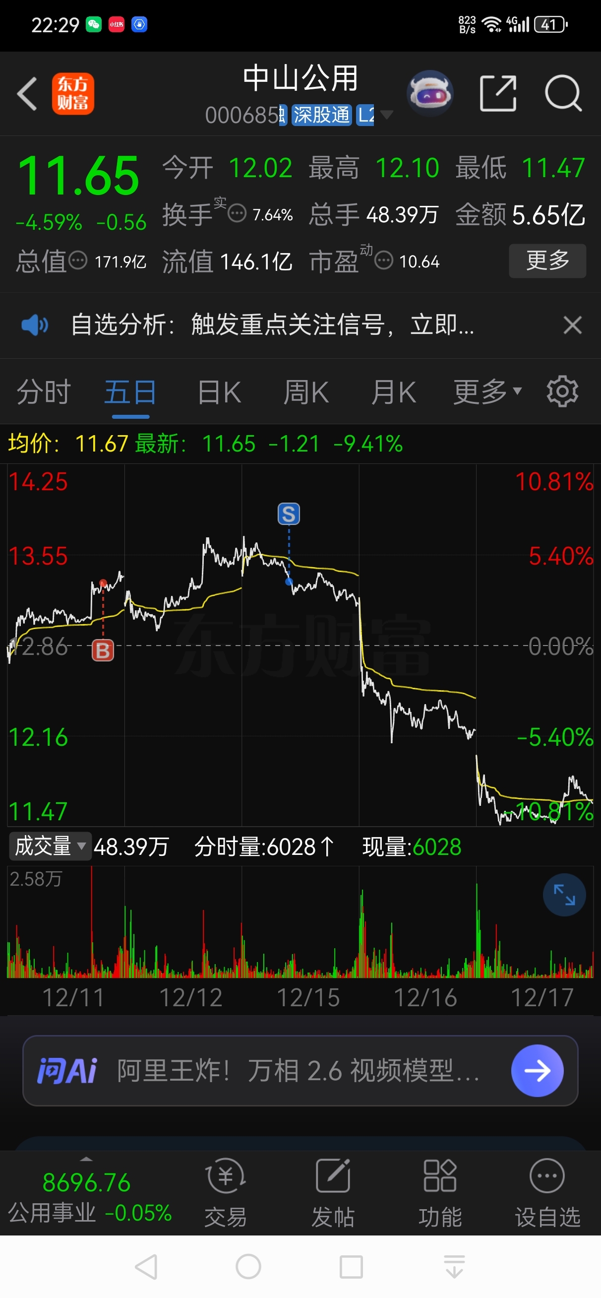 $中山公用(SZ000685)$ 好在我卖掉了,后面大掉!