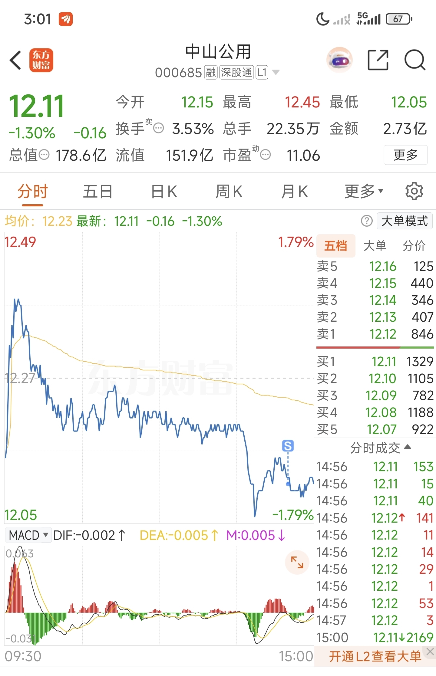 $中山公用(SZ000685)$ 拜拜了您嘞,杂毛一个浪费行情。周一进的航天都吃了十几个点了。早半个月为啥非得在你这耗着。
