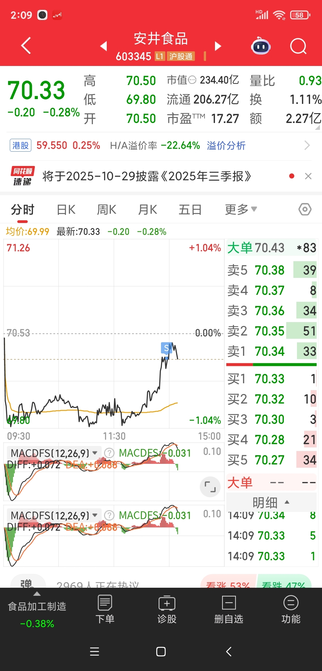 止盈安井食品!