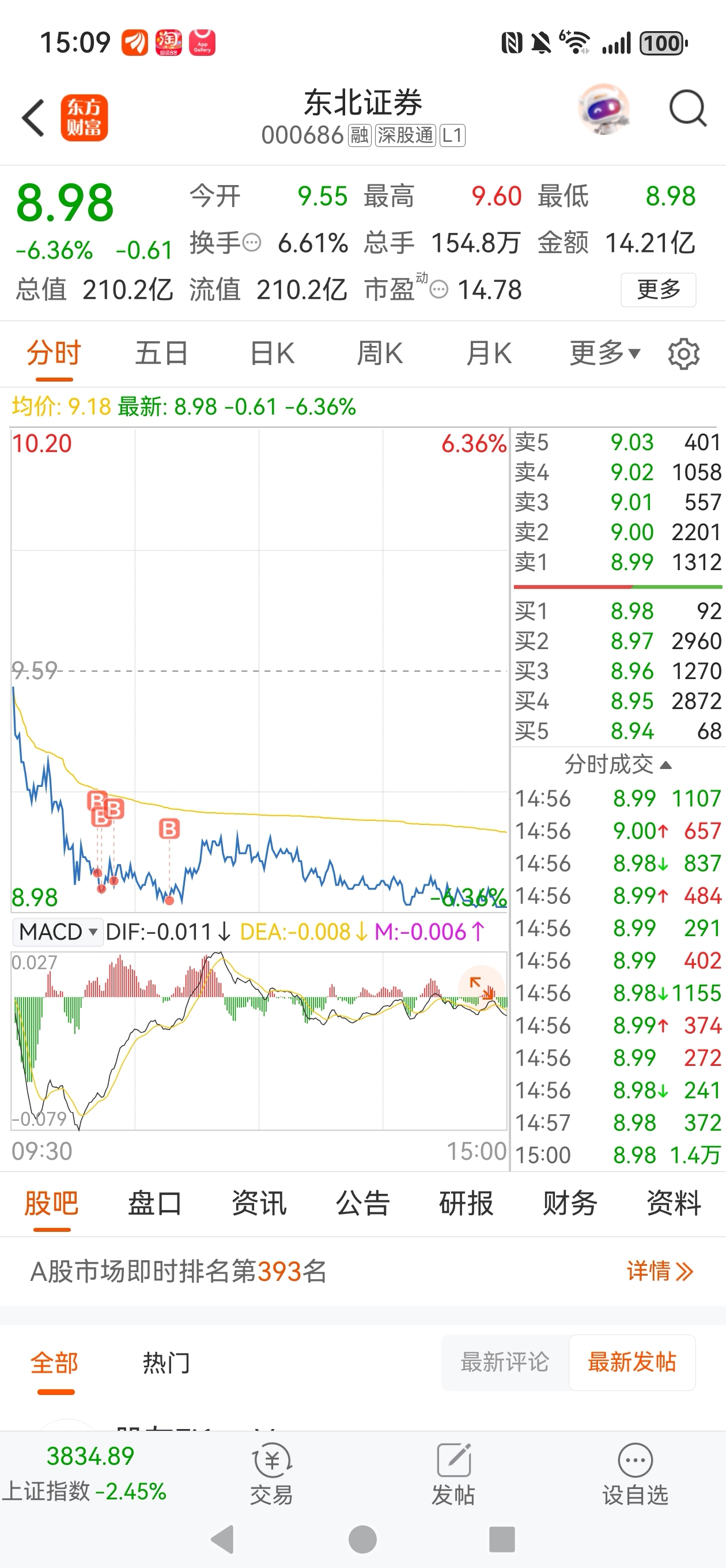 $东北证券(SZ000686)$ 今天没去追板块大哥反而没亏着钱。下周该反弹了贪心5个点就跑
