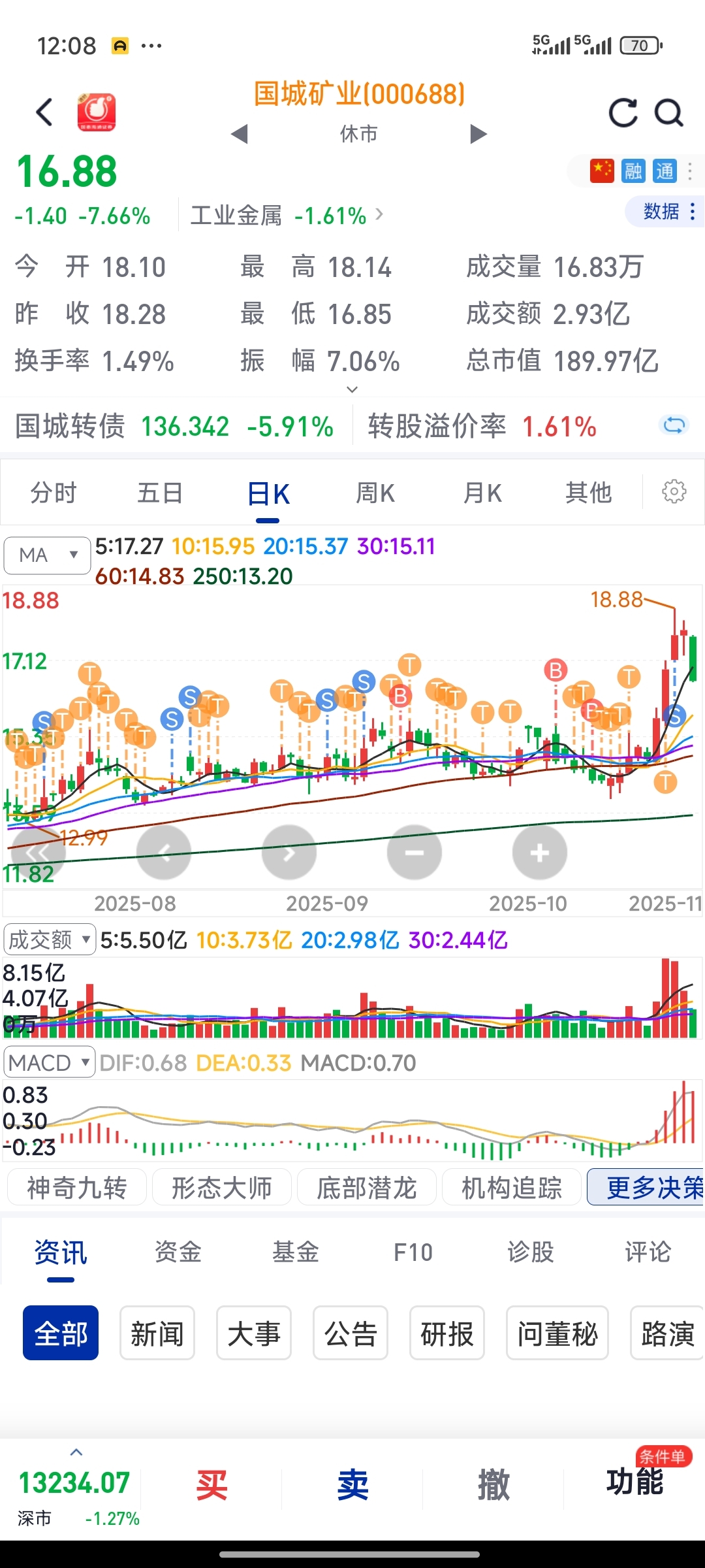 $国城矿业(SZ000688)$ 拿了几年终于在前天差不多最高点清仓了