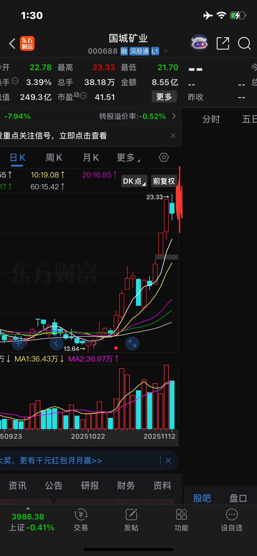 $国城矿业(SZ000688)$ 国城,明天24元左右卖