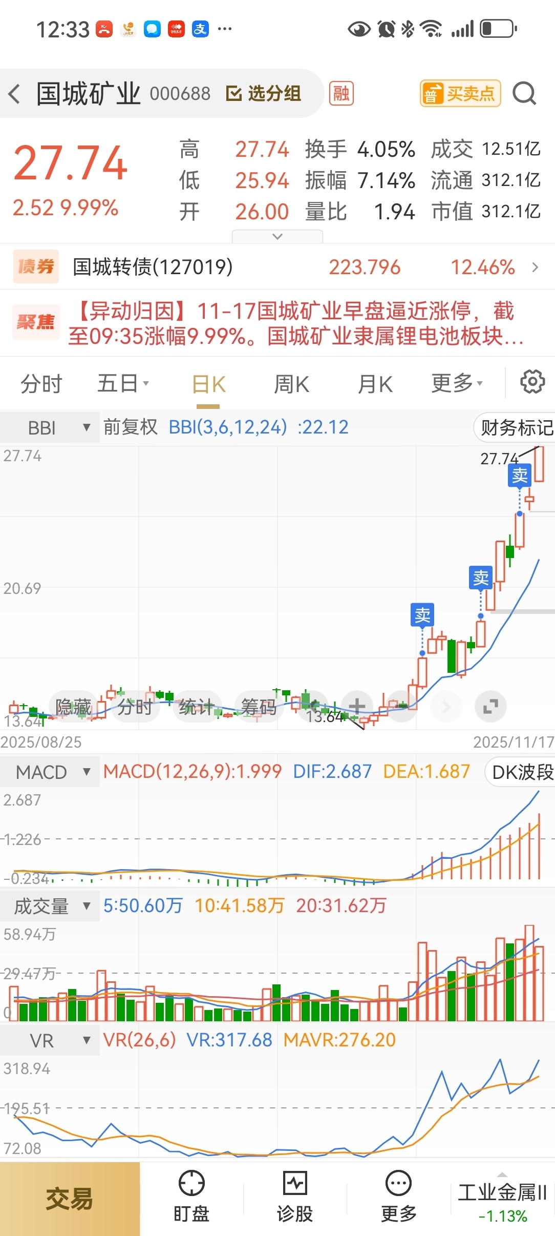 $国城矿业(SZ000688)$ 一路涨,一路卖,快卖干净了
