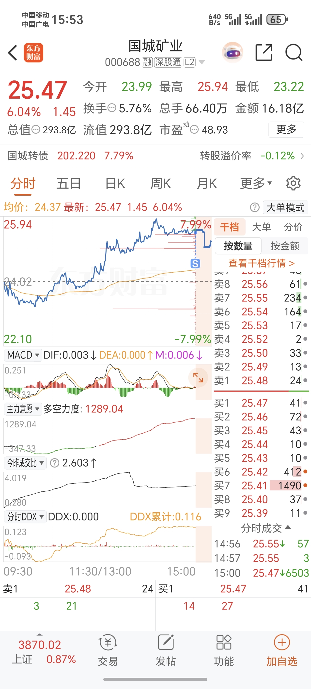 $国城矿业(SZ000688)$ 尾盘跑了!看到吧里这么多看好的!后悔了!!!