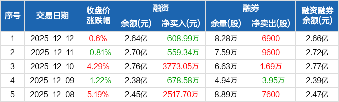 国城矿业:融资净偿还608.99万元,融资余额2.64亿元(12-12)